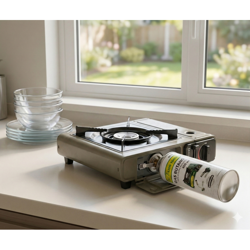 Lata de gas butano para esufa portatil